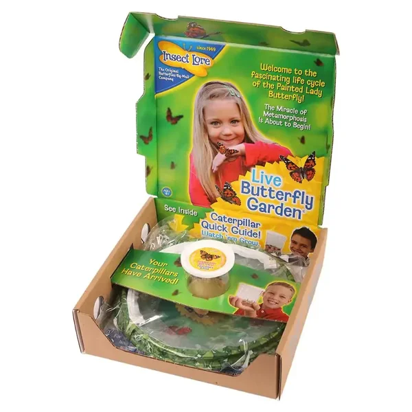 This educational kit gives children, students and families an unforgettable opportunity to watch caterpillars change into chrysalides and then emerge as beautiful Painted Lady Butterflies. Raise and feed your very own butterflies and then release them into the wild! The entire transformation from caterpillar to adult butterfly takes about three to five weeks.